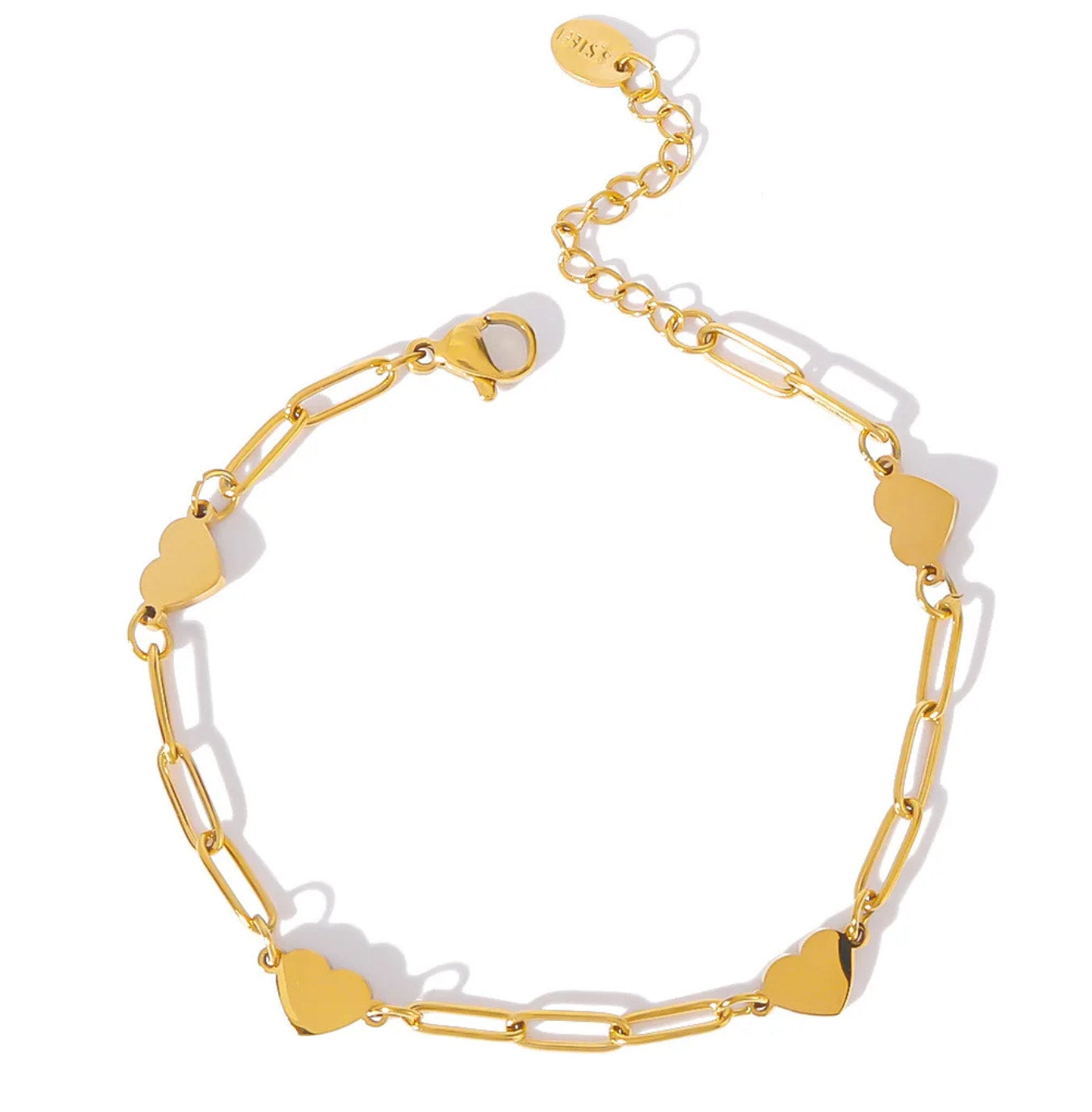 Wear your heart on you wrist with the Heartstrings Bracelet. Crafted in radiant 18K Gold plated, this elegant piece features a modern paperclip chain adorned with delicate heart-shaped links, creating a stunning balance of sophistication and sentiment.